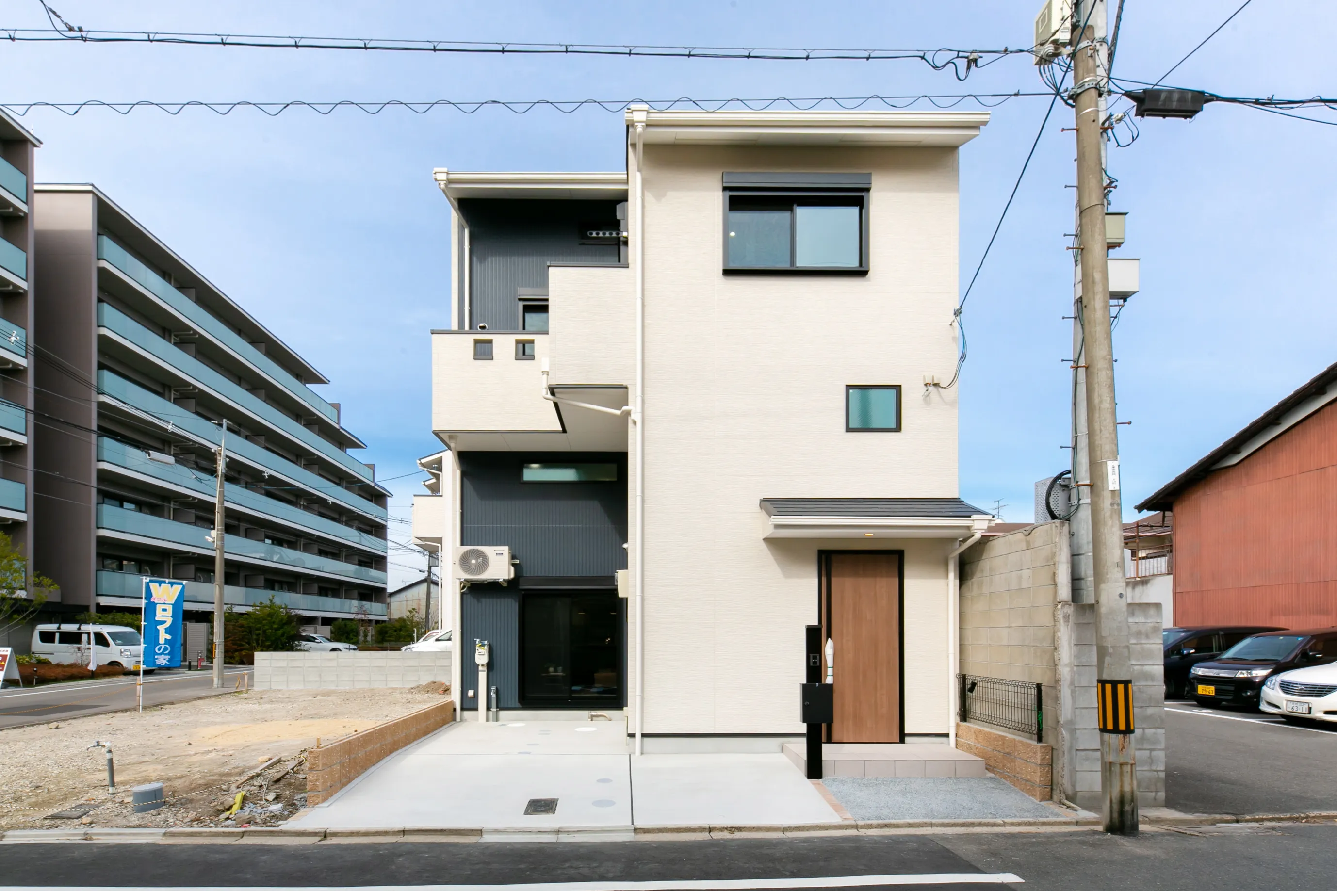 Wロフトのいえ 木目の温もりと黒の静寂。インダストリアルが薫る知的な家 所在地 京都市南区 家族構成 入居時期 建物面積 1F 38.57㎡ 2F 38.41㎡ 延床面積 76.98㎡ ロフト・収納階面積 29.15㎡ 合計 106.13㎡