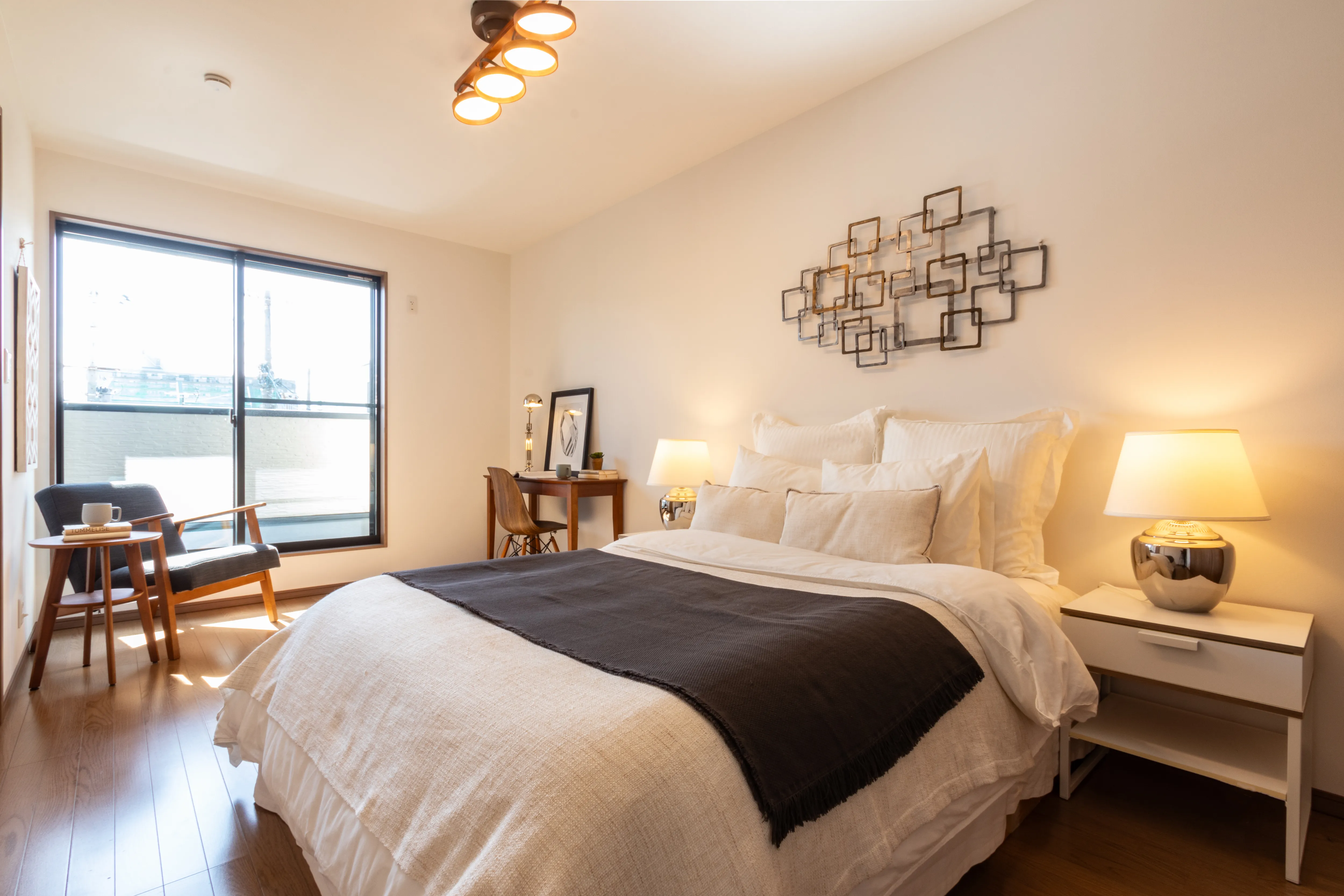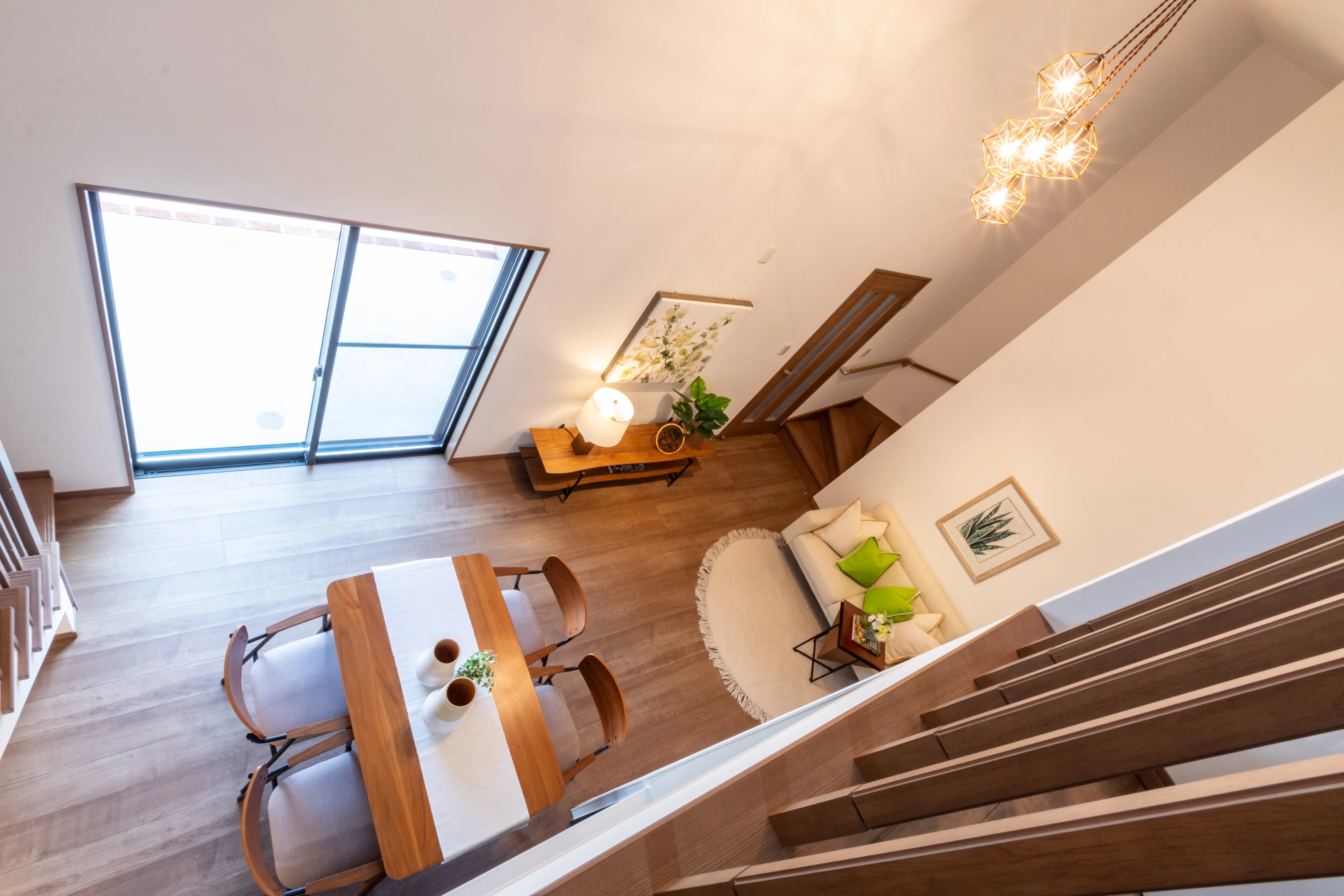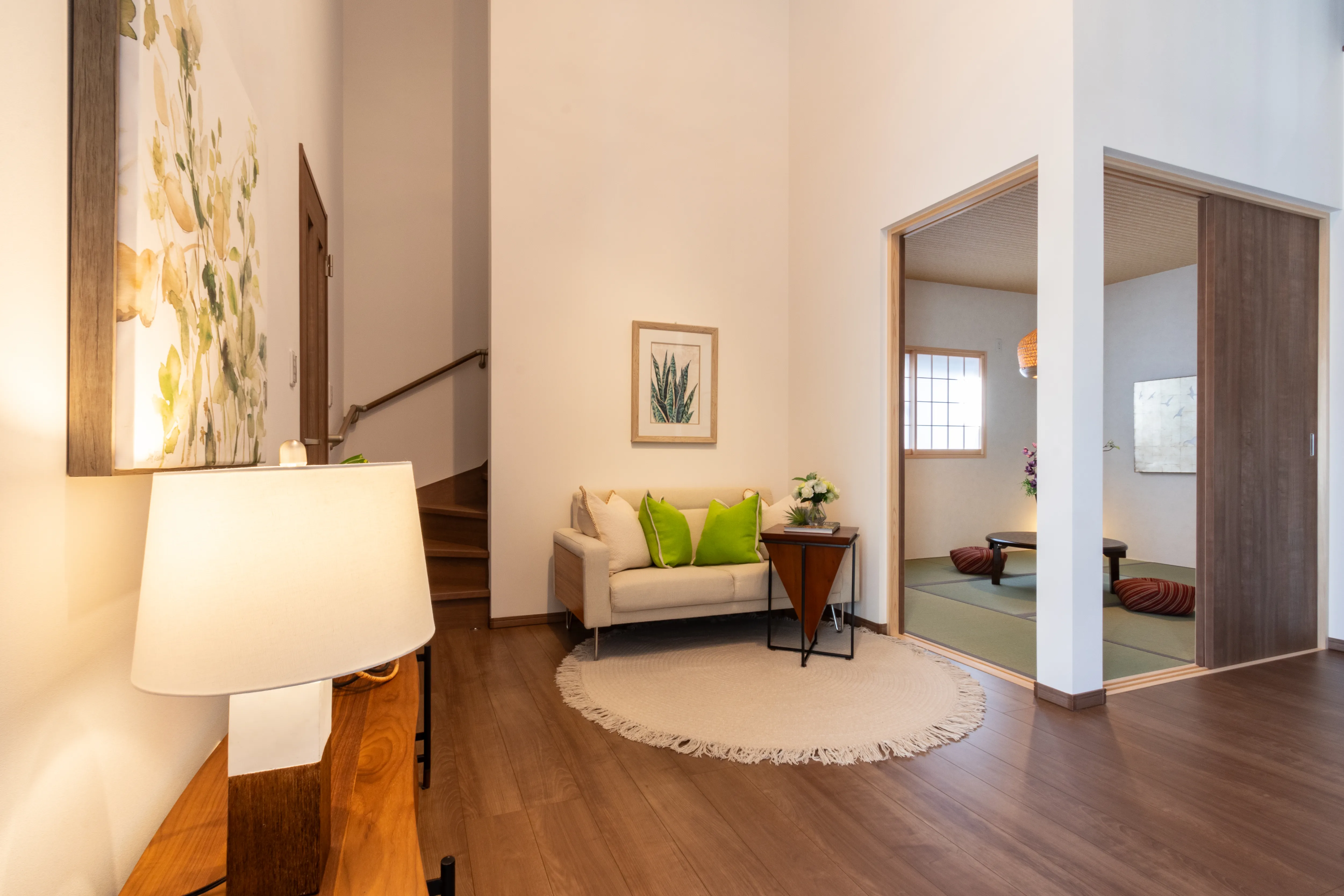 デザインと家事動線が響きあうホテルライクな暮らし 所在地 京都市右京区 家族構成 入居時期 建物面積 1F 52.80㎡ 2F 46.57㎡ 延床面積 99.37㎡ ロフト・収納階面積 13.05㎡ 合計 112.42㎡