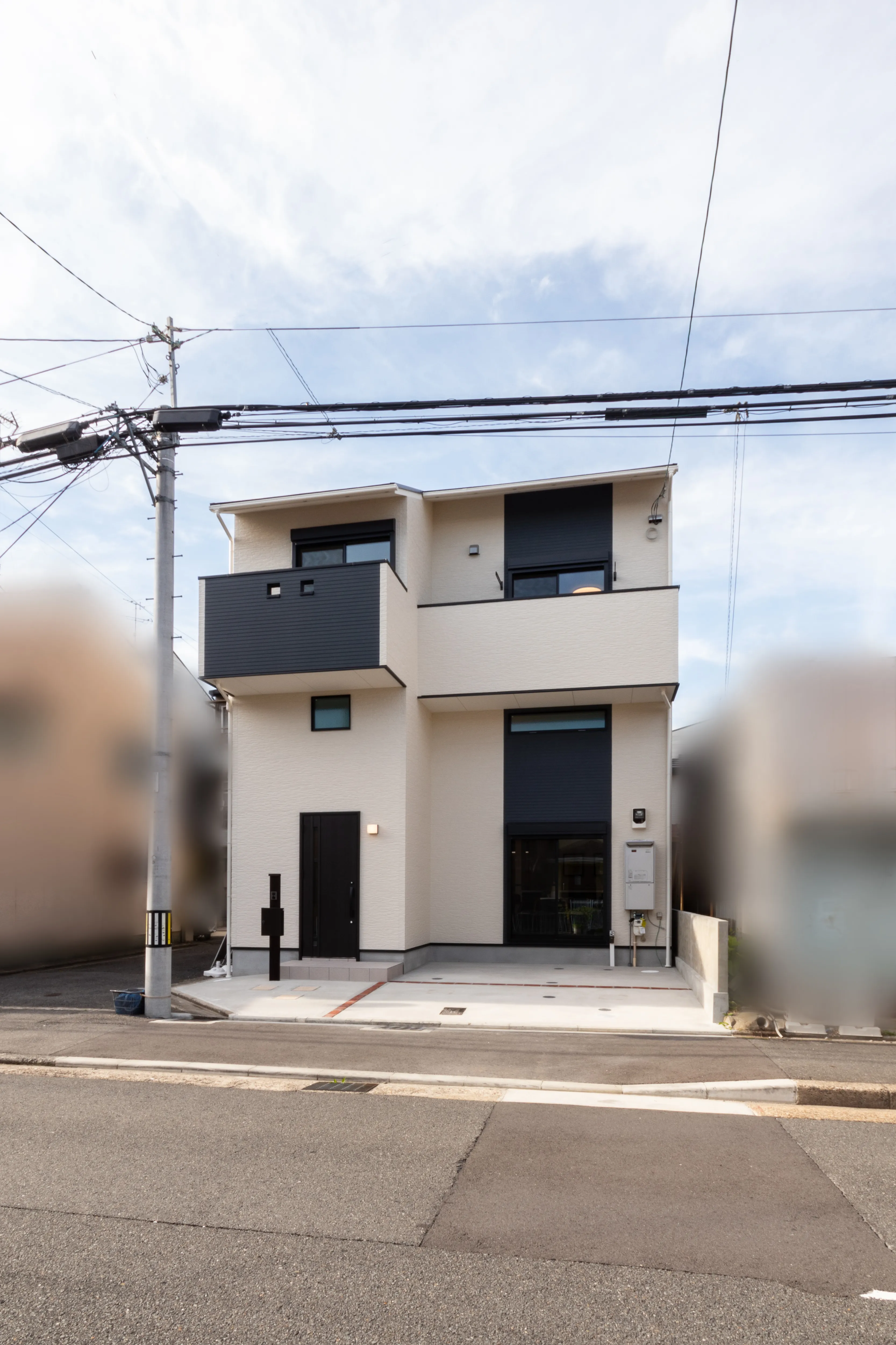 Wロフトのいえ 洗練を極めたモノトーン・モダン・スタイル 所在地 京都市西京区 家族構成 入居時期 建物面積 1F 41.22㎡ 2F 39.60㎡ 延床面積 80.82㎡ ロフト・収納階面積 31.87㎡ 合計 112.69㎡