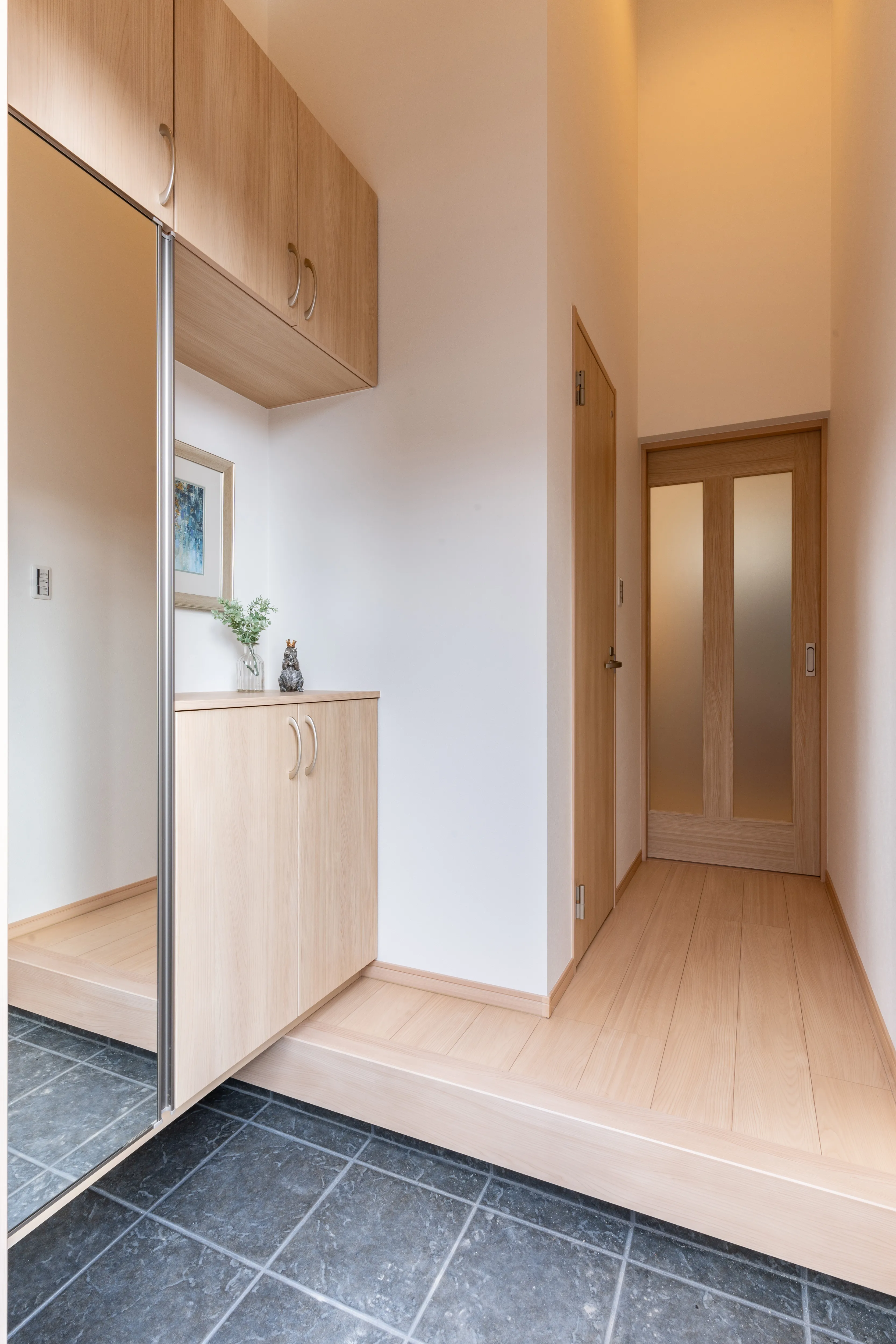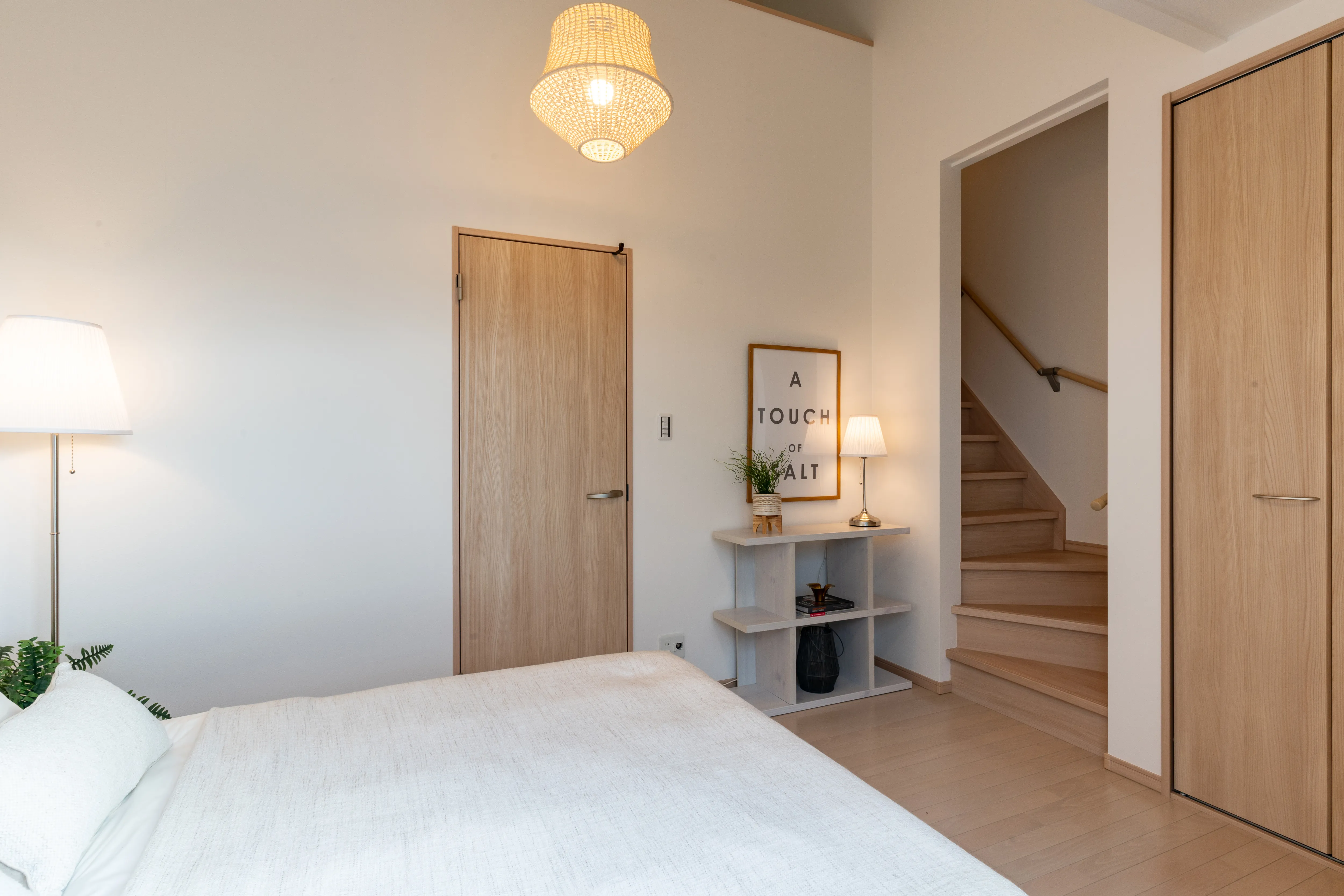 Wロフトのいえ 「飾る・しまう・癒える」が調和する上質な日常 所在地 京都市南区 家族構成 入居時期 建物面積 1F 51.84㎡ 2F 42.39㎡ 延床面積 94.23㎡ ロフト・収納階面積 29.57㎡ 合計 123.80㎡